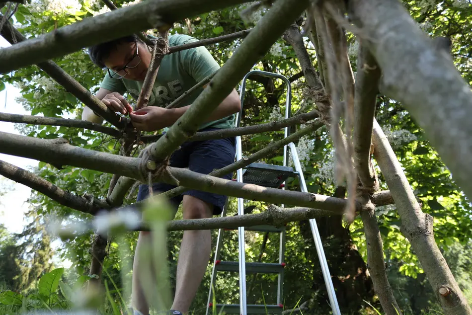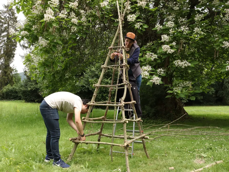 Anders als in den Jahren zuvor wurden die Projekte nicht lange vorbereitet und Material eingekauft, sondern vor Ort, unter dem Thema „Mensch und Natur im Miteinander“, mittels der dort zur Verfügung stehenden natürlichen Ressourcen spontan erarbeitet und, wie der Name erahnen lässt, im Einklang mit der Natur errichtet.