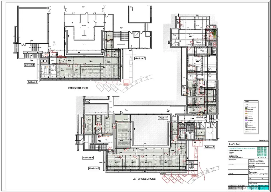 (1): Zugang außerhalb der Öffnungszeiten der Hochschule per Hochschulkarte (Studieausweis/Bedienstetenausweis) am Haupteingang Geb. G und den beiden RZ-Eingängen im EG und UG. Besondere Ereignisse können eine Schließung erzwingen.